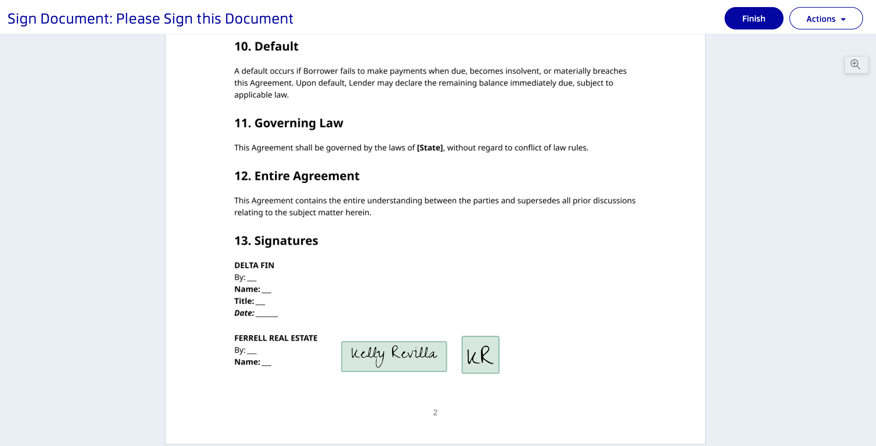Once all required fields are completed, click the Finish button in the top right corner to submit your signature.